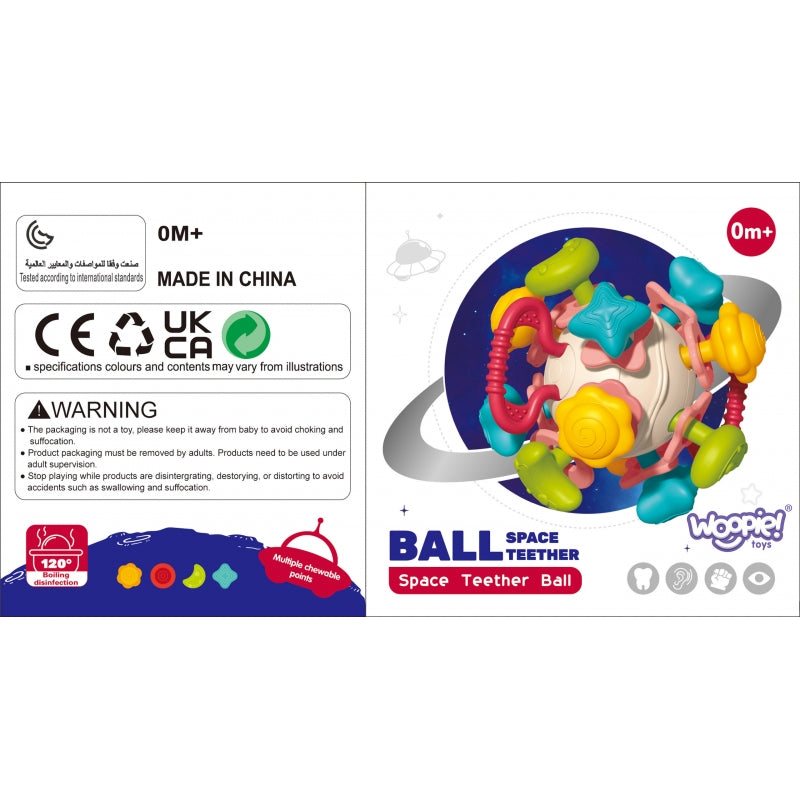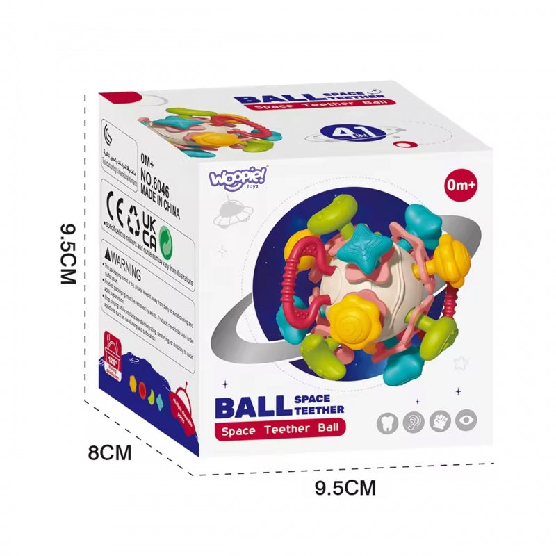 Kolorowa Grzechotka w Kształcie Piłki od marki WOOPIE to idealna zabawka dla najmłodszych, wypełniona drobnymi koralikami i zaprojektowana z myślą o niemowlętach. Kształt i wielkość zostały dostosowane do umiejętności i potrzeb dzieci, a każdy z okręgów obraca się, wydając charakterystyczny dźwięk. Uchwyty grzechotki są wykonane z gumy, co zapewnia komfort użytkowania.Charakterystyka: