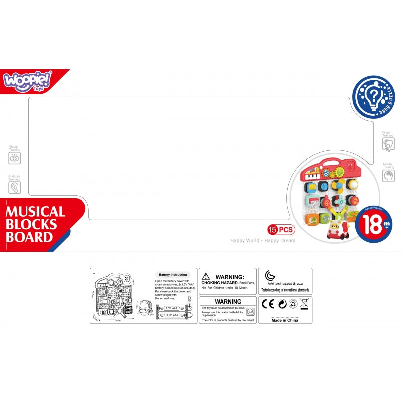 Na doczepianych klockach znajdują się różnego rodzaju przełączniki, pokrętła, przyciski, wyjmowane chusteczki, kłódka z kluczykiem, okienka otwierane na zasuwkę. Rozwijają one u dziecka umiejętności motoryczne, poznawcze i sensoryczne a także ćwiczą koordynację ręka- oko.