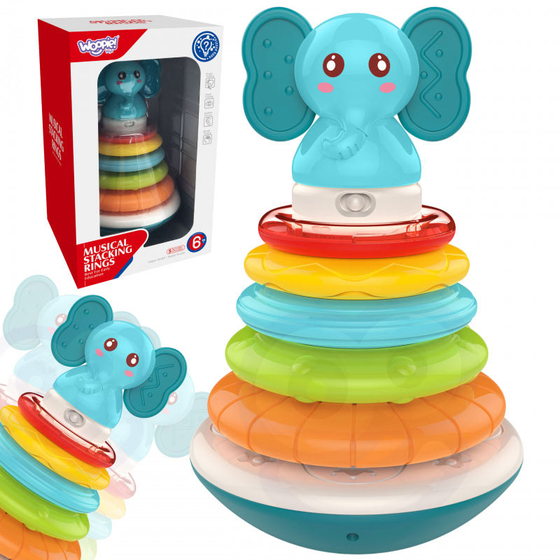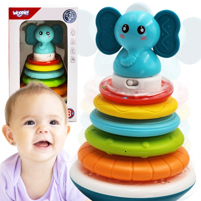 WOOPIE BABY Piramida Wieża Interaktywna Słonik z Obręczami Grzechotka