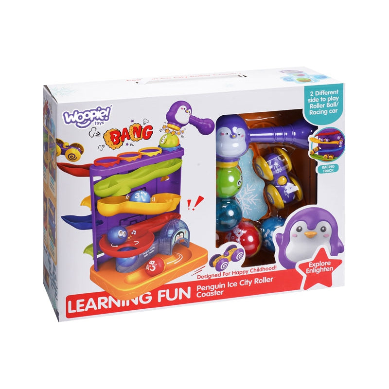 Tor Kulkowy Kulodrom 3w1 Wbijak z Młoteczkiem Zjeżdżalnia dla Samochodzików od marki WOOPIE to multi funkcyjna zabawka, która rozwinie i zaciekawi dziecko. Posiada 3 główne funkcje. Wbijak - zabawka wczesnego rozwoju: przebij 4 piłki przez otwory, aby zobaczyć, dokąd lecą! Zobacz, jak staczają się po rynnie. Młotek jest lekki i mały, co ułatwia trzymanie. Małe dzieci łatwo się angażują, umieszczając błyszczące kulki w szczelinach, uderzając je młotkiem i obserwują jak śmigają po rampach. Do zestawy dołączony jest jeszcze samochodzik. Zabawka z drugiej strony posiada zjeżdżalnie i to właśnie tam umieszczamy autko i patrzymy jak zjeżdża. Zestaw zawiera różne kulki, które mogą służyć do nauki np. liczenia i alfabetu. Poprawia koordynację ręka-oko i umiejętności motoryczne poprzez zabawę i wyobraźnię.