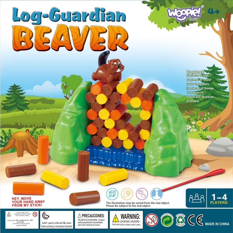 - Bevat 46 onderdelen: 2 muren, 1 bever, 42 boomstammen en een stokje om boomstammen uit te duwen