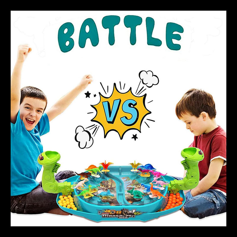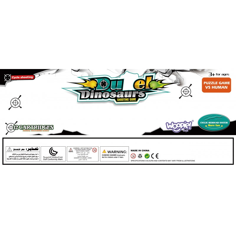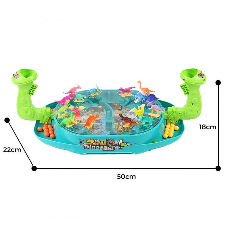 Dino Gevecht is een spannend behendigheidsspel van het merk WOOPIE, ontworpen voor twee spelers. Deze dino-schietwedstrijd verbetert de hand-oogcoördinatie en reactievermogen van kinderen. Zet de dinofiguren op de juiste plekken op het speelbord, laad de gekleurde balletjes in de houder, trek aan de hendel en probeer de dino’s van het bord van je tegenstander te schieten. Degene die als eerste alle dino’s van de tegenstander raakt, wint het spel!