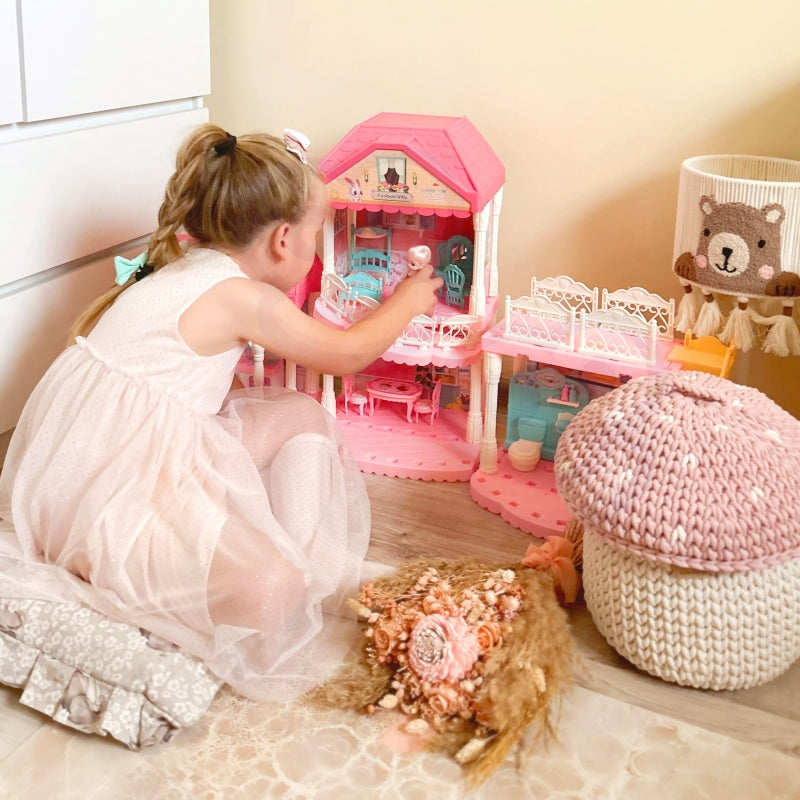 Domek dla Lalek CASTLE VILLA XXL od marki WOOPIE to kompleksowe rozwiązanie dla małych miłośników kreatywnej zabawy. Zestaw zawiera domek z dwoma niezależnymi poziomami, na których znajdują się cztery pomieszczenia. Każde pomieszczenie zostało starannie zaprojektowane i wykończone w unikalnej stylistyce, z meblami i wyposażeniem dopasowanym do charakteru i przeznaczenia danego pokoju. Nic jednak nie stoi na przeszkodzie, aby Twoje dziecko pobawiło się w projektanta wnętrz i urządziło je po swojemu. Zestaw obejmuje również lalkę oraz komplet mebli, które można dowolnie wyjmować i przestawiać, dając dzieciom pełną swobodę w kreowaniu własnej przestrzeni do zabawy.