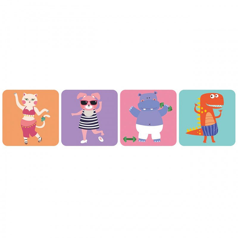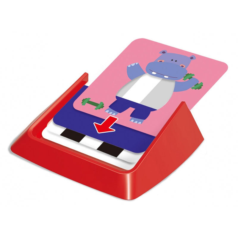 Losowo wybierz kartę wyzwania i odpowiedni model – kotka, hipopotama, królika lub dinozaura