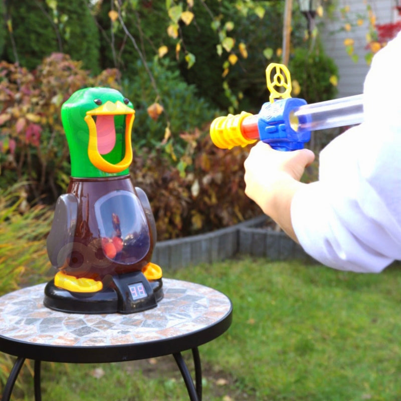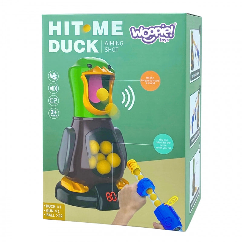 - celujemy w język kaczki, po wpadnięciu do środka piłeczki kaczka liczy punkty i wyświetla wynik na wyświetlaczu