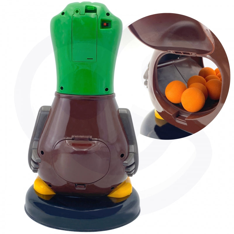 - celujemy w język kaczki, po wpadnięciu do środka piłeczki kaczka liczy punkty i wyświetla wynik na wyświetlaczu