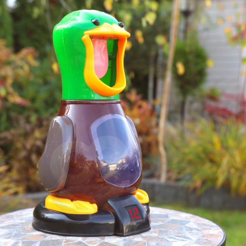- Kaczka ma na sobie duży wyświetlacz LCD, na którym jest widoczny wynik