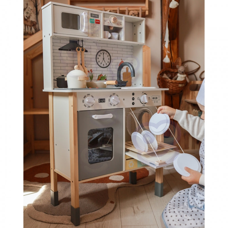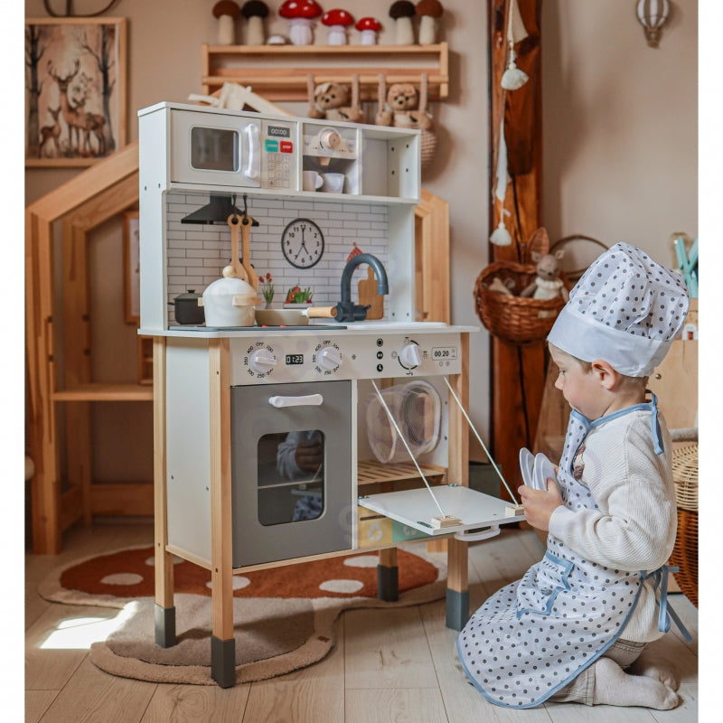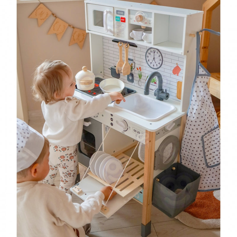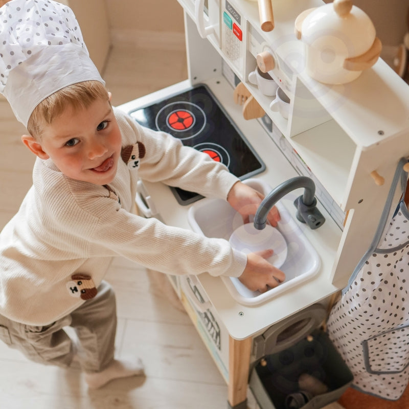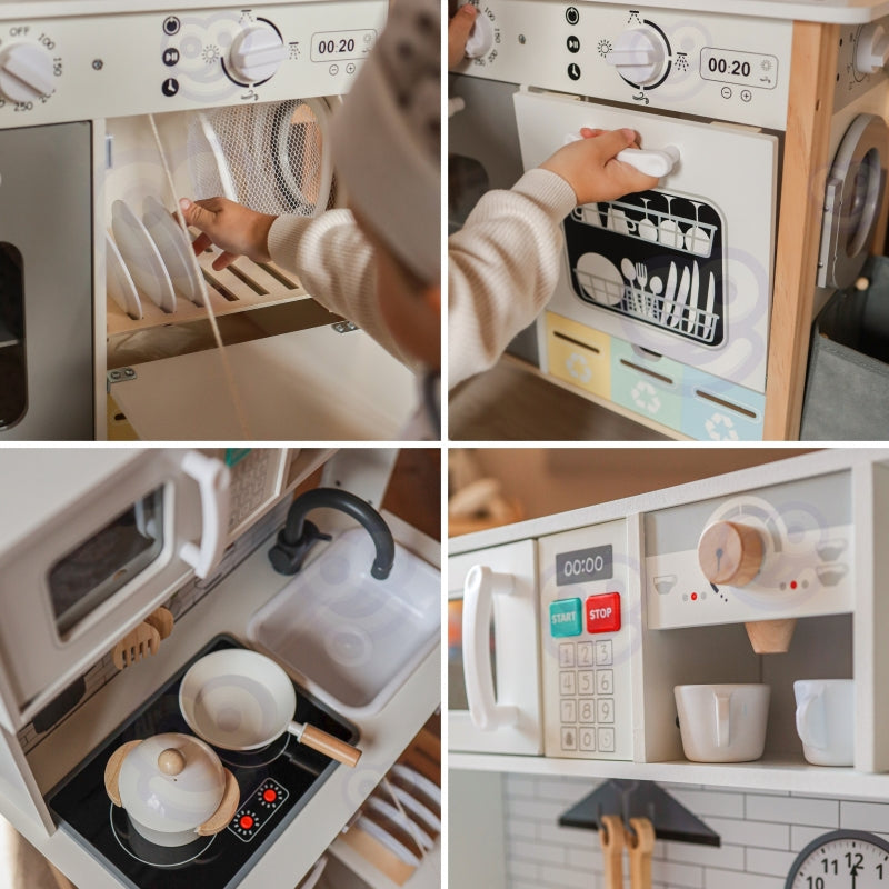Wielofunkcyjny zestaw kuchenny od Woopie Green to drewniana kuchnia stworzona z myślą o małych pasjonatach gotowania i odkrywania świata. Zestaw łączy w sobie ponad 9 różnych funkcji, rozwijając kreatywność i ucząc codziennych czynności poprzez zabawę. Idealny do pokoju dziecięcego, sali zabaw lub przedszkola.