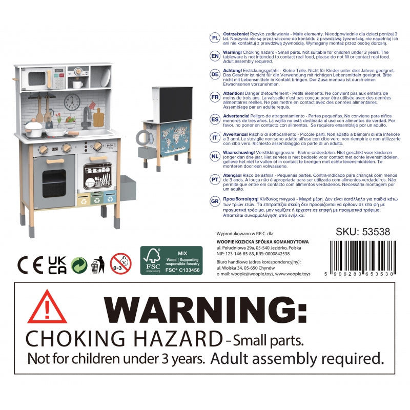 WOOPIE GREEN Drewniana Interaktywna Kuchnia 9w1 z Pralką i Tablicą