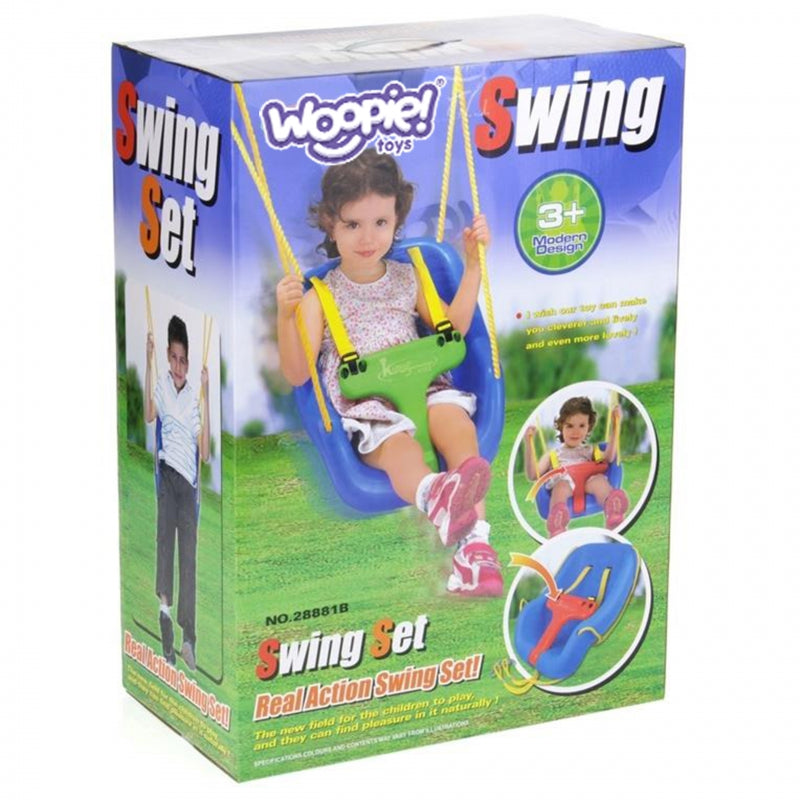 Huśtawka dla maluchów od marki WOOPIE gwarantuje bezpieczną i beztroską zabawę! Huśtawkę można zawiesić zarówno w domu, jak i w ogrodzie. Specjalnie zaprojektowane zabezpieczenia, takie jak pas bezpieczeństwa, wysokie oparcie oraz regulowane siedzisko zapewniają komfort i bezpieczeństwo maluchów podczas zabawy. Huśtawka posiada szerokie siedzisko i otwory na nogi, co ułatwia dzieciom wejście i wyjście. Co więcej, produkt jest dostarczany z liną zakończoną hakami, co ułatwia montaż, a możliwość demontażu niektórych elementów pozwala dostosować fotelik do wieku dziecka.Charakterystyka: