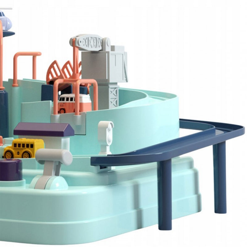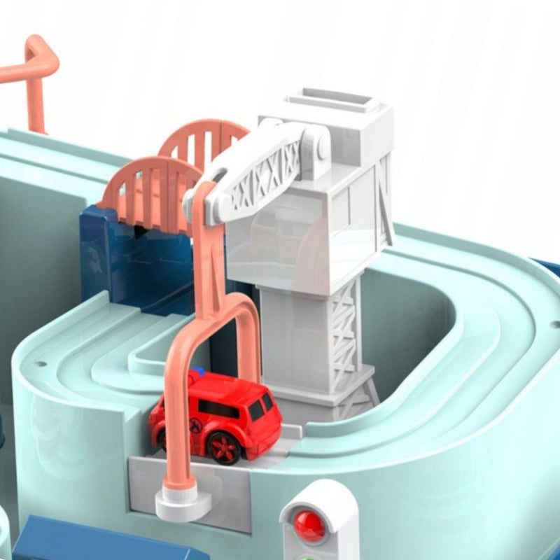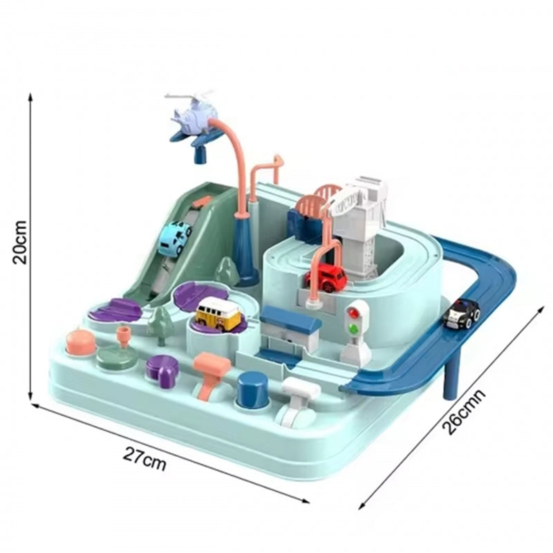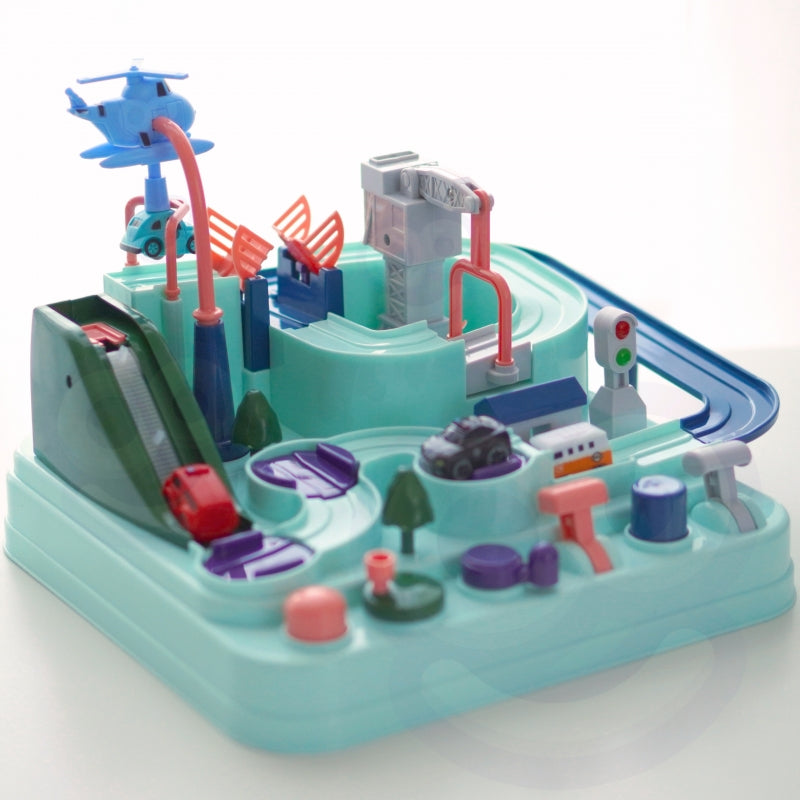 Het autospeelbord biedt niet alleen de mogelijkheid voor ritten, maar bevat ook dynamische, interactieve elementen die met knoppen en draaiknoppen bediend kunnen worden. Het is een opwindend spel dat concentratie en behendigheid vereist. De set bevat drie auto's die vrij over het parcours kunnen rijden, afhankelijk van de verbeelding van het kind. De voertuigen maken het spel leuker of stellen kinderen in staat om tegen elkaar te racen. Het lijkt misschien eenvoudig om het parcours af te leggen, maar de vele elementen, zoals tandwielen of opklapbare bruggen, maken de reis spannend en vol adrenaline.