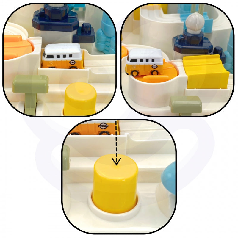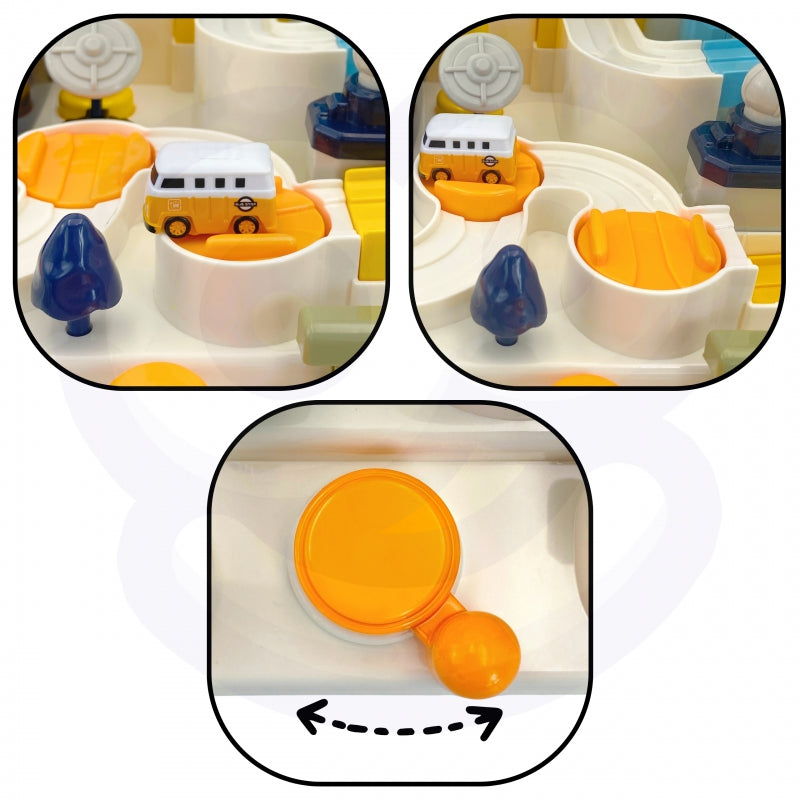 - Zabawka od 3 roku życia- Do zestawu dołączona instrukcja obsługi zabawki - Zaprojektowany na wzór bazy kosmicznej, z elementami takimi jak statki kosmiczne i pojazd UFO- Ruchome elementy - sterujemy nimi używając odpowiednich guzików i obracając odpowiednie pokrętła- Autka przenoszone "w powietrzu" dzięki magnesowi - Dzieci muszą planować swoje działania i podejmować decyzje, jak pokonać różne przeszkody na trasie- Aby tor działał, nie potrzebne są baterie