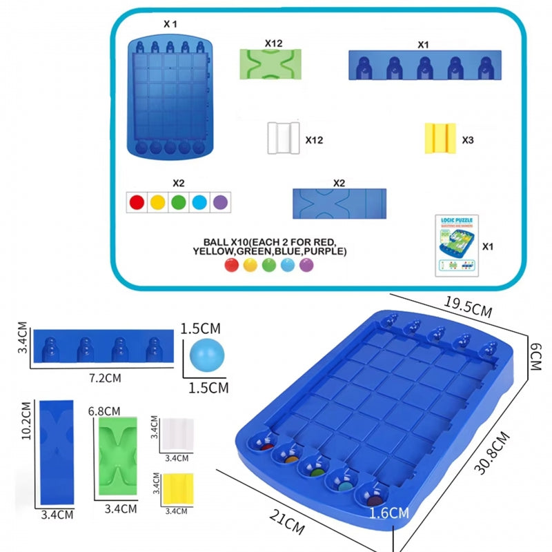Gra Strategiczna od marki WOOPIE, to wspaniały pomysł na prezent dla twojego dziecka jeśli chcesz aby spędziło czas na rozwijającej, wspierającej rozwój grze. Proste zasady i rozgrywka, która angażuje mózg dziecka do myślenia, gwarantują godziny wspaniałej zabawy. Zasady są łatwe - każdy kolor kulki musi trafić do odpowiadającemu jej dołeczka. Nie jest to jednak takie łatwe, do gry dołączona jest książeczka z 60 zadaniami do wykonania podczas budowy różnych torów dla kuleczek.