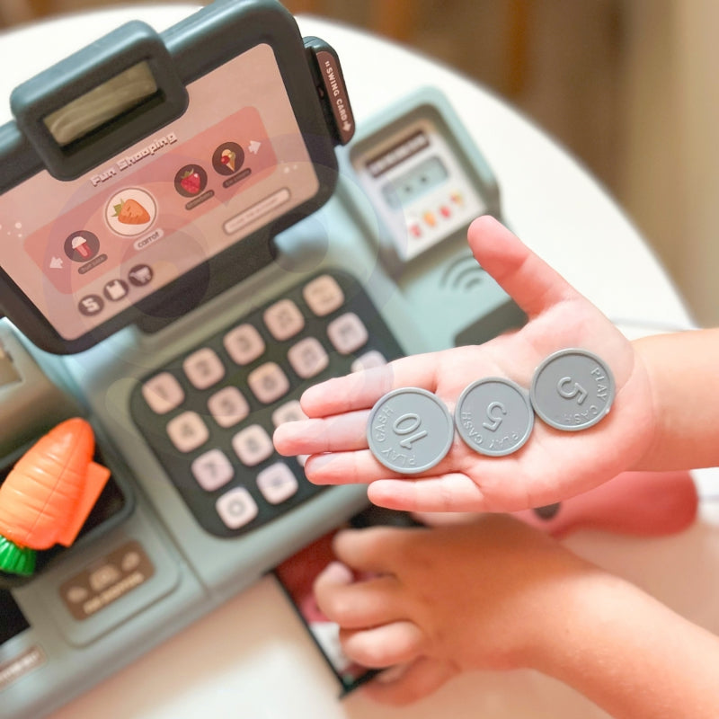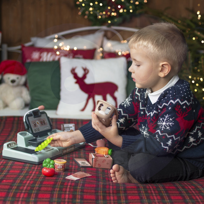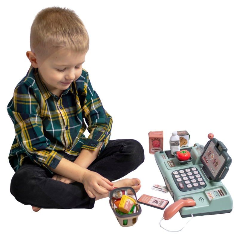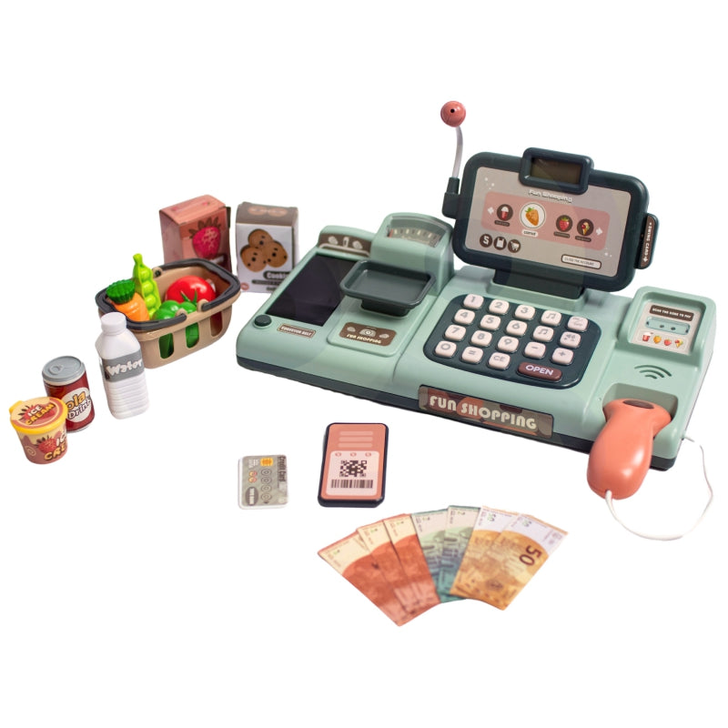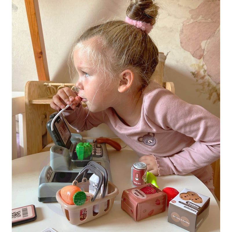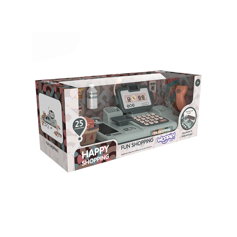 Kasa Sklepowa z mnóstwem akcesoriów od Woopie to idealna propozycja dla dzieci powyżej 3 roku życia. Zabawka rozwija wyobraźnię dzieci i zachęca je do kreatywnego myślenia. Dzieci mogą ważyć owoce i warzywa, a następnie nabić je za pomocą klawiatury do kasy. Przy pomocy czytnika zeskanują paczkę ciasteczek lub butelkę wody. Następnie będą mogły zapłacić na trzy sposoby: tradycyjnie za pomocą pieniędzy, karty płatniczej lub smartphonem. Wszystko to jest dołączone do zestawu i zapewni dziecku długie godziny zabawy.