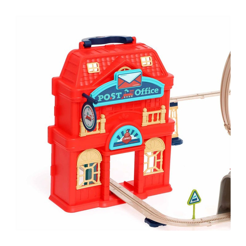 Kolejka Elektryczna 2w1 Składana w Walizkę od marki Woopie to idealna propozycja dla małych miłośników kreatywnej zabawy. Zestaw zawiera tory o łącznej długości 3,5 m z pętlą, wiaduktem i szlabanem, co zapewnia wiele możliwości zabawy. Lokomotywka z efektami dźwiękowymi dodatkowo uatrakcyjnia zabawę (baterie AAA nie są dołączone). Walizka służy jako praktyczne opakowanie oraz element torowiska tworząc dwa budynki. Zabawka przeznaczona dla dzieci powyżej 3 lat jest bezpieczna.