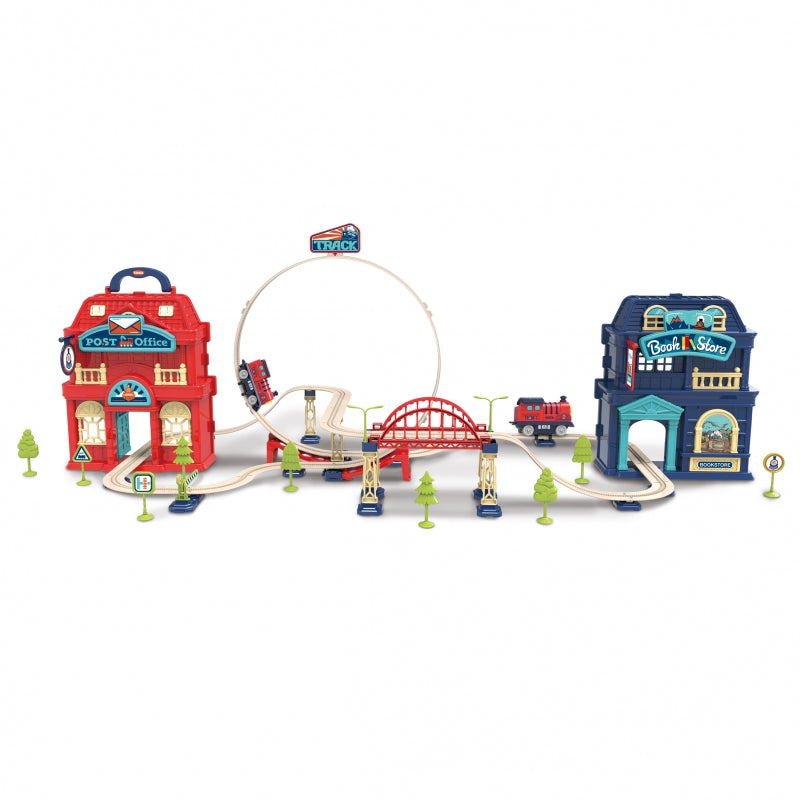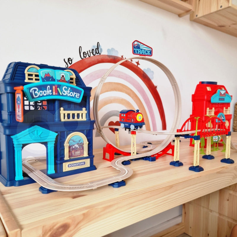 - Liczne akcesoria - Tor kolejowy z pętlą, wiaduktem i szlabanem