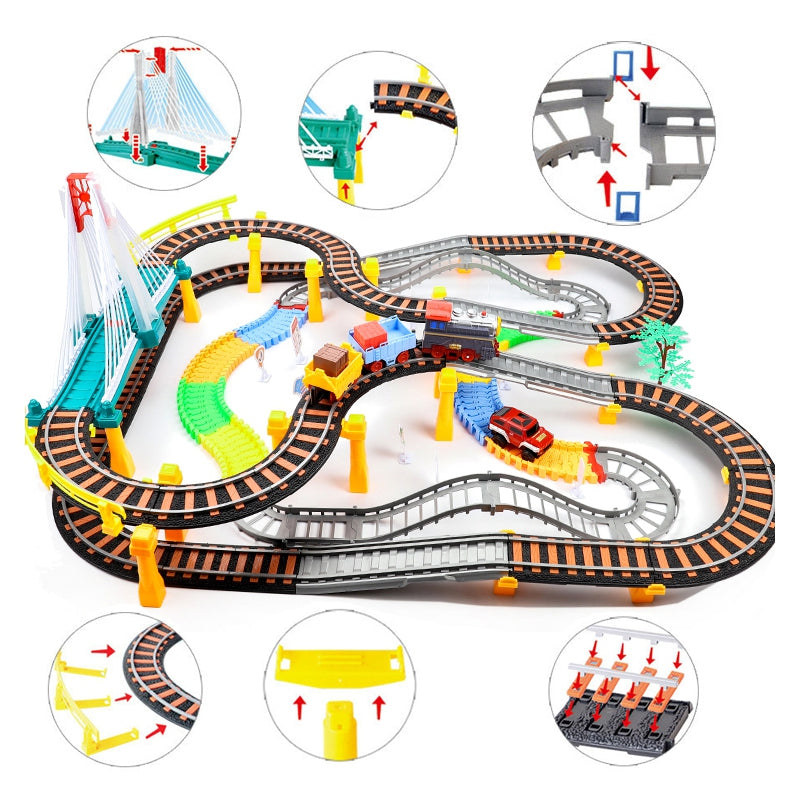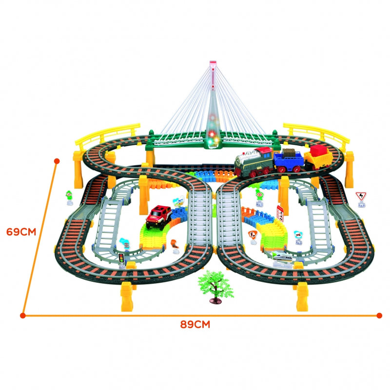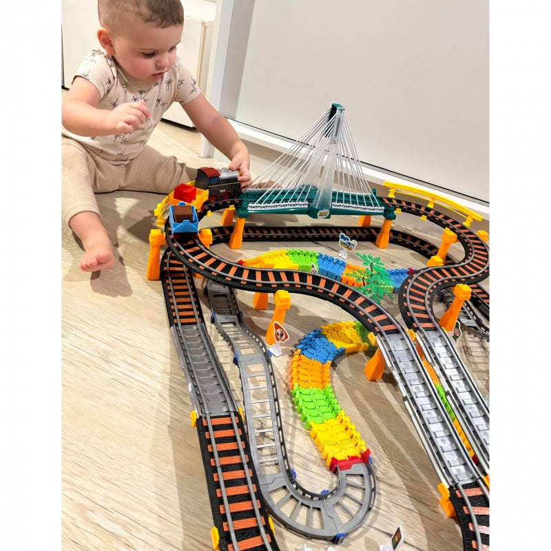 WOOPIE Kolejka Elektryczna 2w1 Tor Wyścigowy Pociąg Wiadukt Auto XXL 192 el.