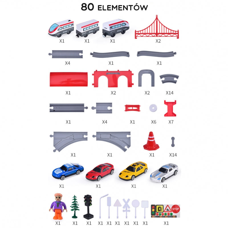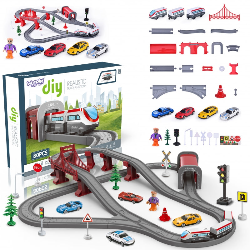 WOOPIE Kolejka Elektryczna Tor Most Tunel 80 el.