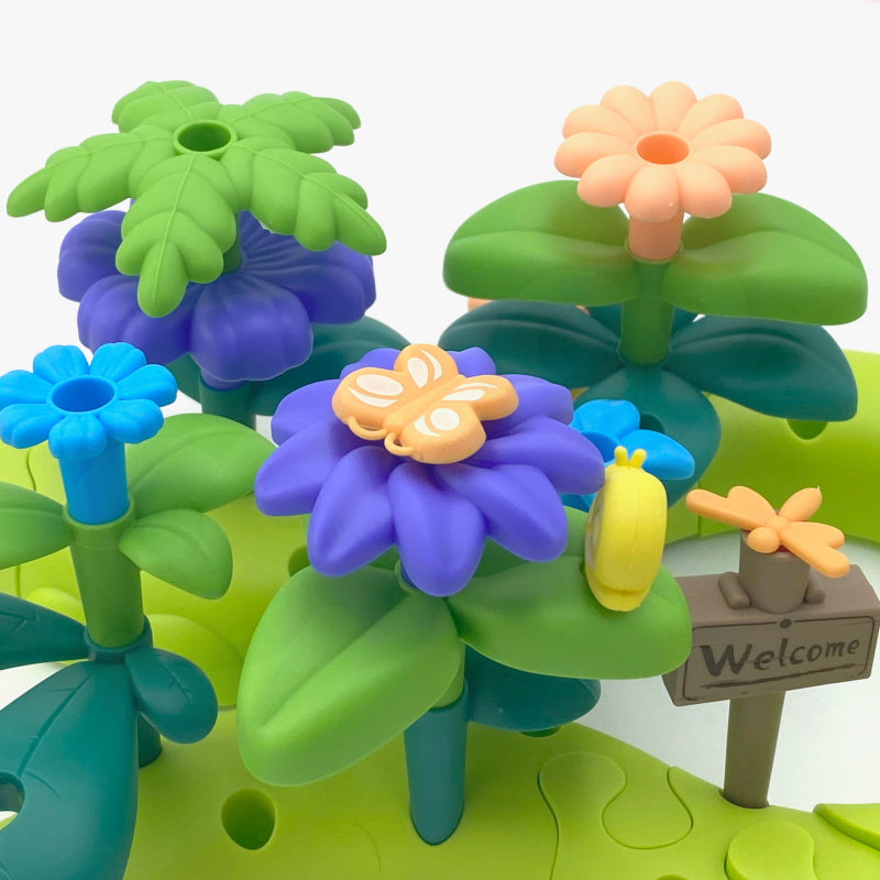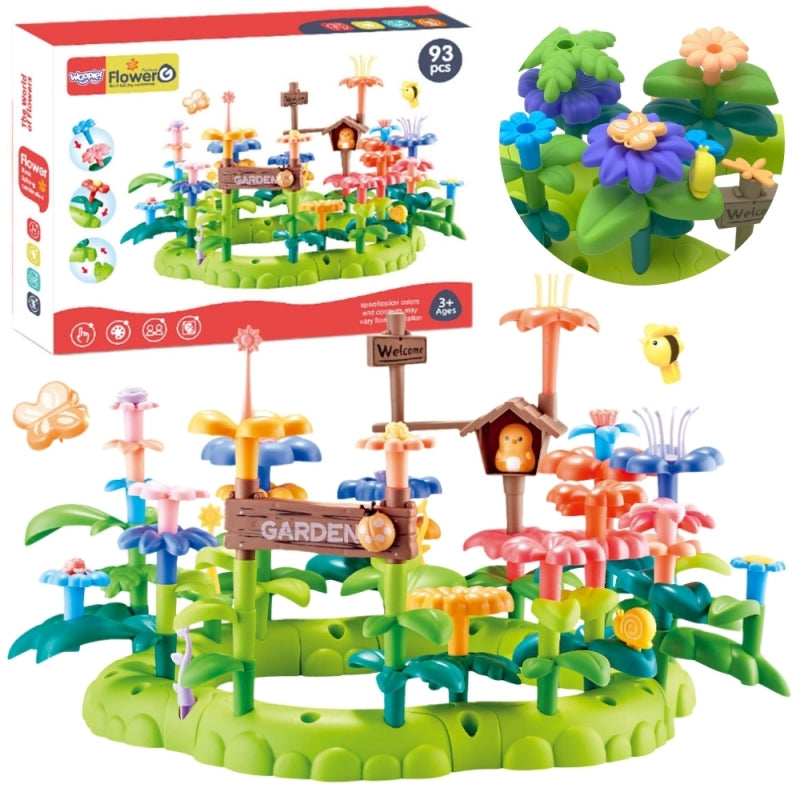 - Zestaw Obejmuje 93el.: Kolorowe kwiaty, listki i inne akcesoria ogrodowe.