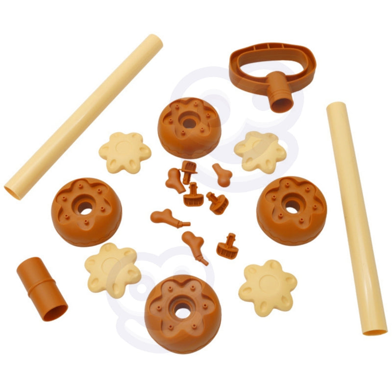 W zestawie pojemniczek na płyn oraz przyczepiany kijek do prowadzenia zabawki