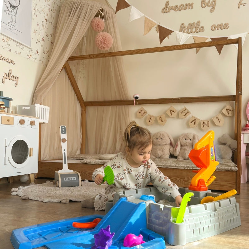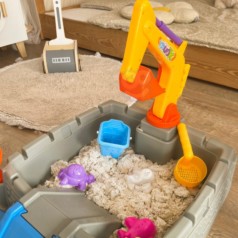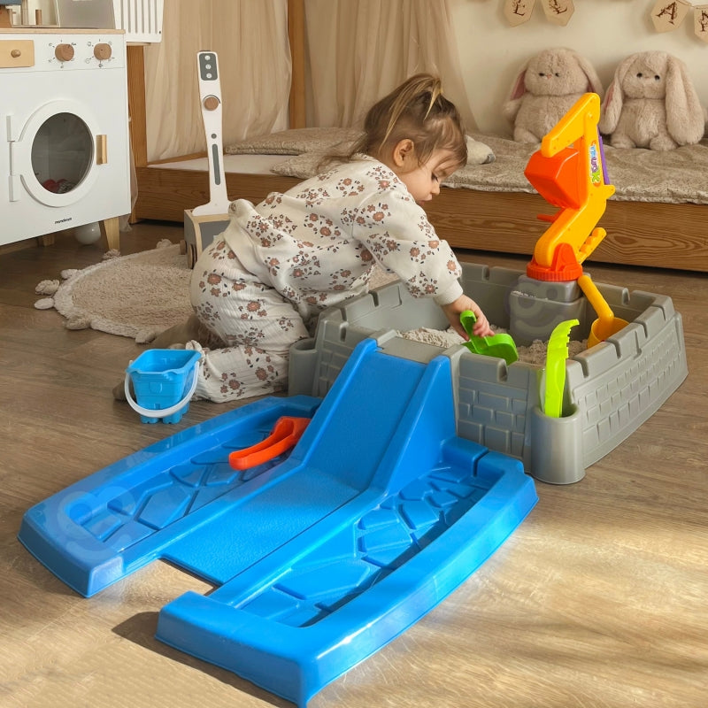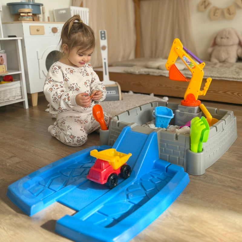 Przenośna piaskownica Zamek od marki WOOPIE to doskonała rozrywka dla dzieci na świeżym powietrzu jak i w domu.Twój ogród, taras, a nawet salon mogą stać się magicznym miejscem pełnym kreatywnej zabawy i niezapomnianych chwil. Piaskownica w kształcie zamku stanowi idealne miejsce do zabawy, zachęcając dzieci do tworzenia piaskowych królestw i fortec. Zestaw zawiera wszystkie niezbędne akcesoria, a ruchome ramię koparki sprawia, że zabawa nabiera nowego wymiaru.Po skończonej zabawie wystarczy zamienić wjazd do zamku, na funkcjonalną pokrywę piaskownicy. Stwórz dziecku przestrzeń, w której będzie mogło oddać się nieskończonej zabawie, rozwijać swoje umiejętności i cieszyć się każdą chwilą. Zestaw Piaskownica Zamek to więcej niż zabawka – to narzędzie do rozwijania wyobraźni i odkrywania świata!Charakterystyka: