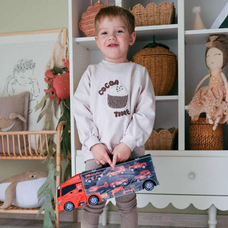 De trailer heeft een afsluitbare laadbak, ideaal om de auto’s na het spelen netjes op te bergen. De waarschuwingsborden leren kinderen basisveiligheid op de weg, waardoor spelen leuk én educatief wordt.