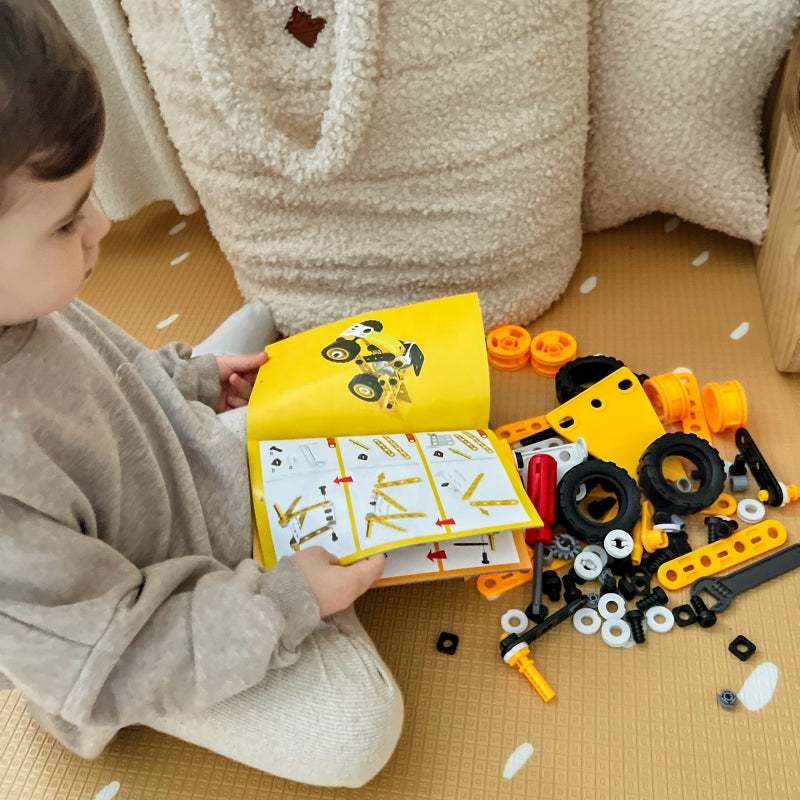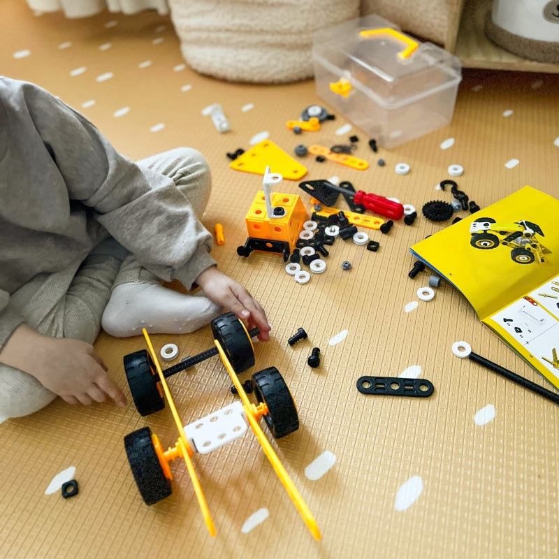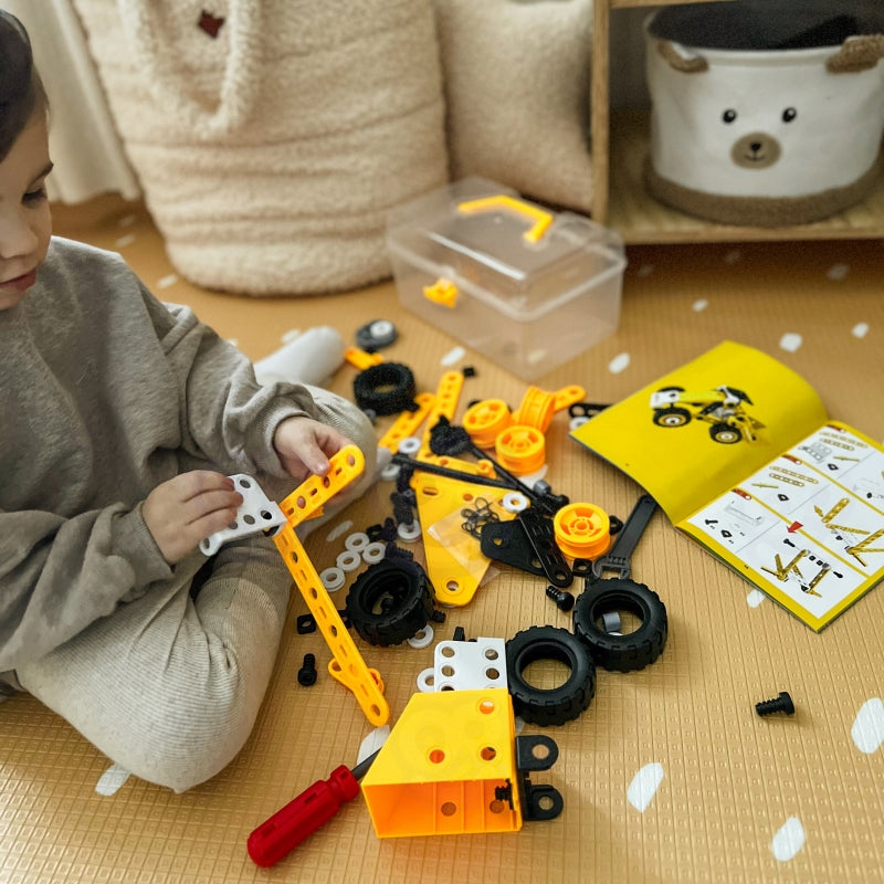 Dit speelgoed leert de basisprincipes van het bouwen van machines en mechanismen, en introduceert kinderen in het gebruik van gereedschap en veiligheid. STEAM-speelgoed stimuleert kinderen om te ontwerpen en modellen te maken, terwijl ze oorzaak-gevolgdenken en ruimtelijke planning ontwikkelen.