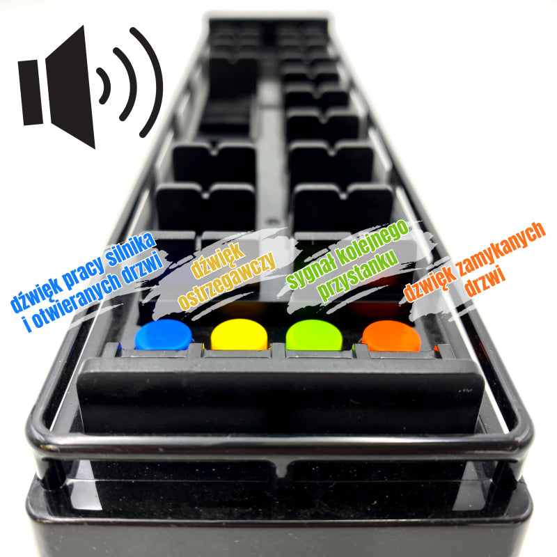 - Groene knop: aankondiging van de volgende halte