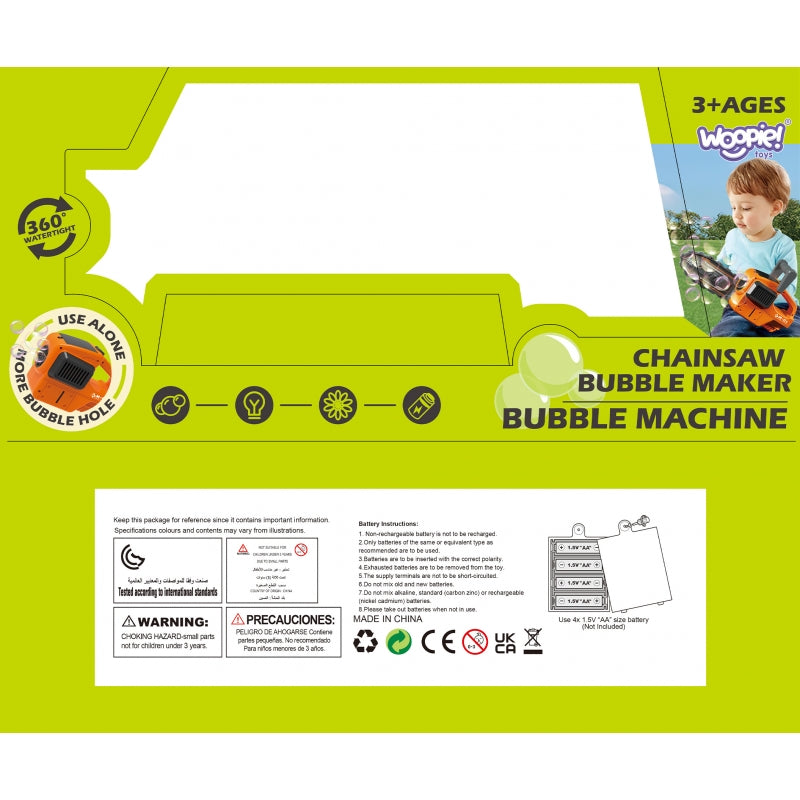 Het speelgoed Kettingzaag met bellenblaas bubbels - Zeepbellenpistool – Kettingzaag van WOOPIE is een bijzondere gadget die het speelplezier naar een hoger niveau tilt. Niet zomaar een speelgoed, maar een echte blikvanger voor feestjes, in de tuin of gewoon een middag buiten. Dankzij het innovatieve ontwerp en indrukwekkende visuele effecten wordt het snel een favoriet van zowel kinderen als volwassenen, vol vreugde en onvergetelijke momenten. De “zaagblad”-opzetstuk is afneembaar, zodat je het snel kunt veranderen van kettingzaag naar een stijlvol bellenblaasmachine. De opening waar de bellen uit komen draait 360 graden en licht op, wat zorgt voor een spectaculair effect terwijl de bellen alle kanten op zweven.
