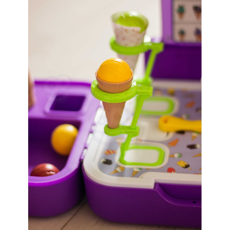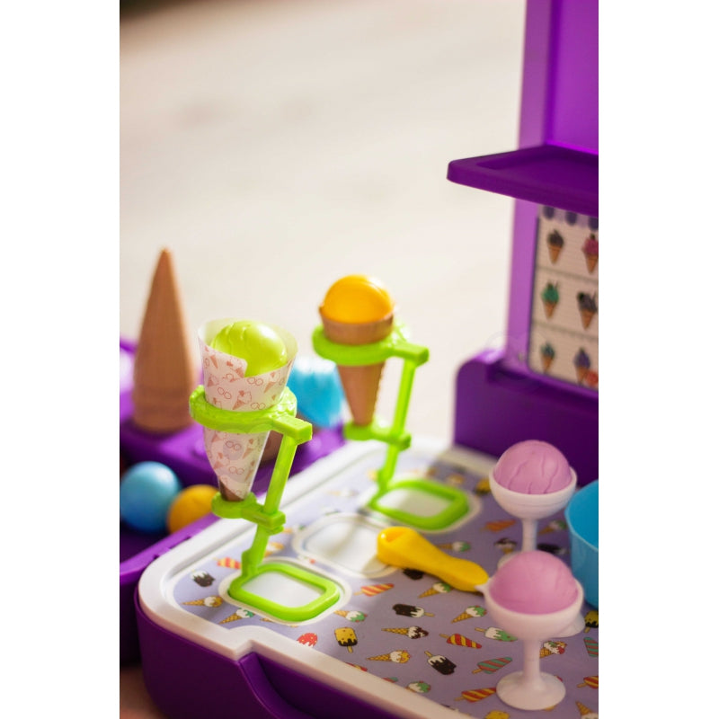 IJskraampje is ontworpen voor de meest veeleisende kinderen. Deze kinderwinkel is speciaal gemaakt voor de verkoop van ijsjes. Jij en je kinderen zullen de originele vormgeving en de manier waarop het de verbeelding stimuleert, geweldig vinden. Het winkel-ijssalon moedigt niet alleen aan tot spelen, maar werkt ook als educatief speelgoed. Deze set is perfect voor verjaardagsfeestjes, zwembadfeestjes, speeltuinen, klaslokalen of kinderdagverblijven. Een super product en ideaal cadeau voor jouw kleintjes! Alles netjes verpakt in een stijlvolle koffer.