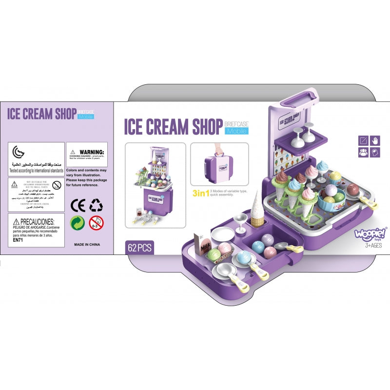 WOOPIE Speelgoed Koffer met IJs - Speelgoed Winkeltje - IJssalon - 62 stuks