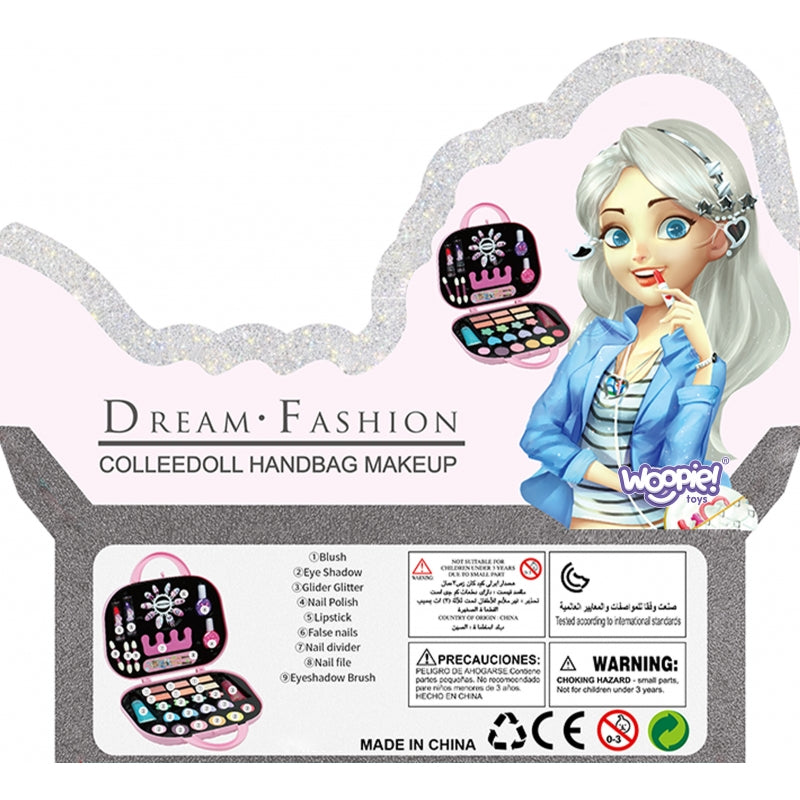 Deze schattige make-up set van WOOPIE is het perfecte cadeau voor kleine mode- en schoonheidsliefhebbers die graag de dagelijkse verzorgingsrituelen van volwassenen nadoen. Speciaal ontworpen voor jonge kinderen, bevat deze set veilige en gebruiksvriendelijke cosmetica die vooral gericht zijn op speelplezier.
