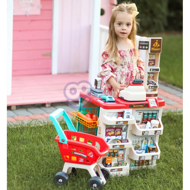 WOOPIE Speelgoed Supermarkt Speelwinkel met Winkelwagentje, Weegschaal, Kassa, Scanner + 48 Accessoires