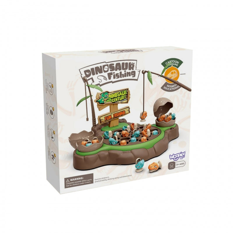 Het WOOPIE-spel ‘Vissen op Dino-visjes’ stimuleert de nieuwsgierigheid en fantasie van je kind! Op een draaiende schijf kunnen kleine dino-visjes gevangen worden met twee hengels. Met de knop aan de voorkant start je de draaiende beweging van de schijf of activeer je een vrolijk muziekje dat de spelpret vergroot. Aan weerszijden van de schijf zitten twee afgesloten eieren waarin de gevangen dino’s bewaard kunnen worden. Deze interactieve spelletjes bevorderen de fijne motoriek, stimuleren creatief en out-of-the-box denken en zorgen voor urenlang plezier tijdens het leren.