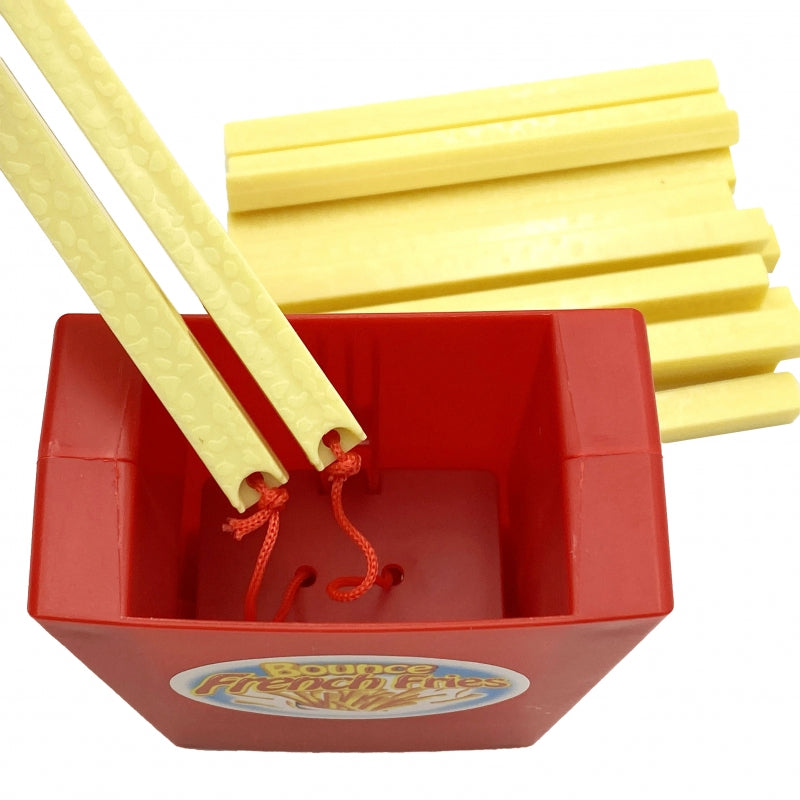 Het WOOPIE behendigheidsspel Springende Frietjes is een vrolijk spel voor kinderen vanaf 4 jaar. De spelregels zijn eenvoudig: trek om de beurt een frietje uit het bakje, maar pas op! Trek je de verkeerde, dan springen alle frietjes eruit – en verlies je het spel!