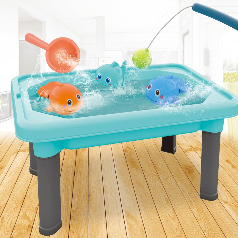 - 3 w 1: stolik, piaskownica, gra łowienie rybek