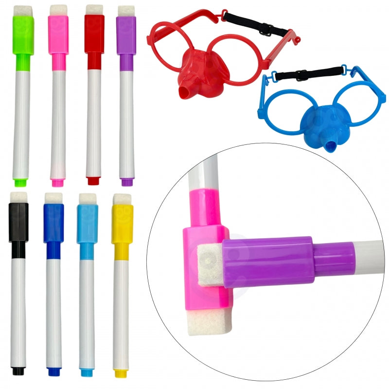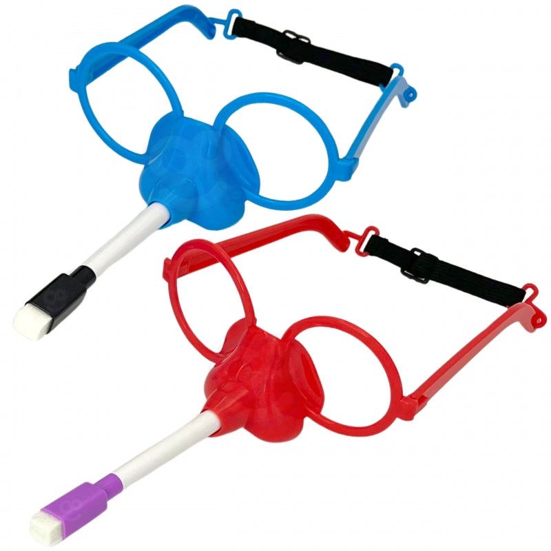 - De eerste speler zet de speciale bril op met de stift eraan bevestigd.