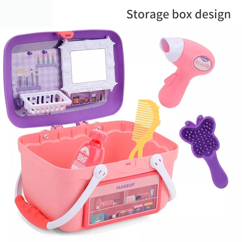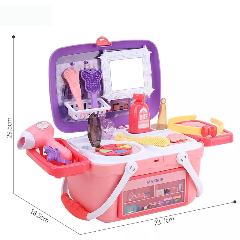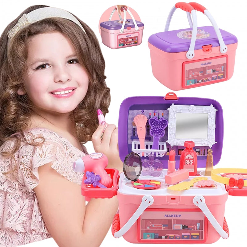 WOOPIE Toaletka dla Dziewczynki 2w1 Salon Piękności Przenośny w Koszyku 26 el