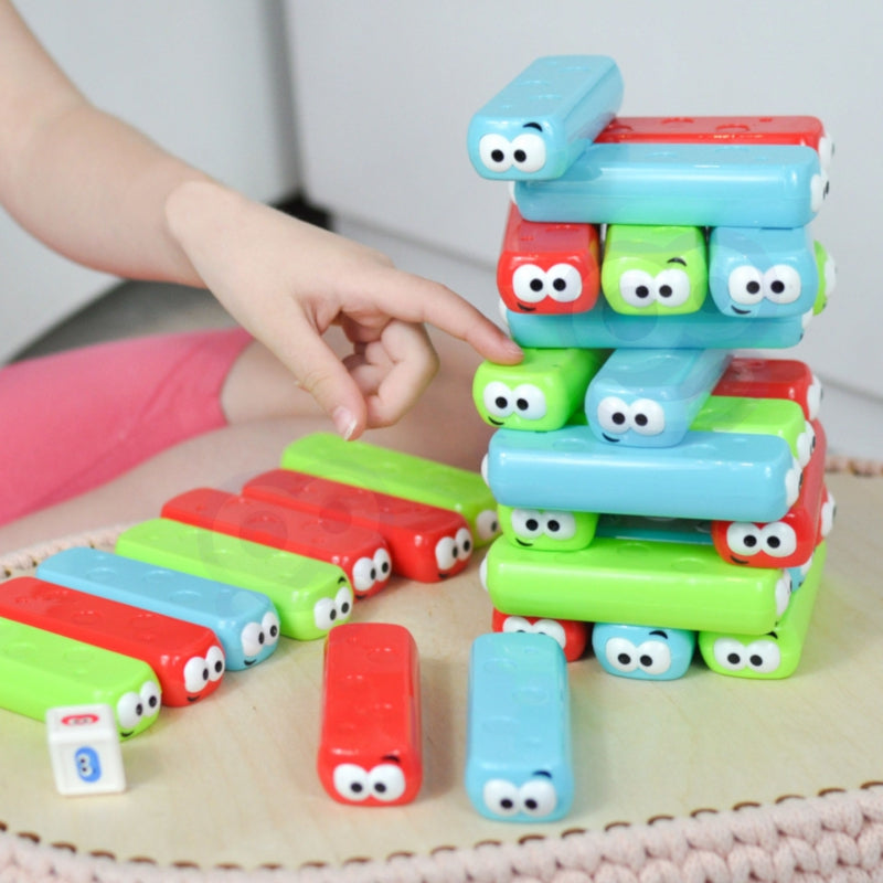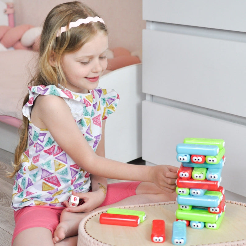 Gra zręcznościowa od marki WOOPIE to doskonała gra zręcznościowa integracyjna dla najmłodszych jak i starszych. Polega na wyciąganiu klocków tak, by nie zburzyć wieży. To idealna gra na spotkania rodzinne, która zadba o nasze relacje z dzieckiem. Zabawka zapewnia nam wiele emocji podczas gry. Jest niezwykle wciągająca i pasjonująca. Gra uczy Twoje dziecko sprytu, refleksu i rozwija jego umysł. Korzystnie wpływa na rozwój zdolności manualnych.