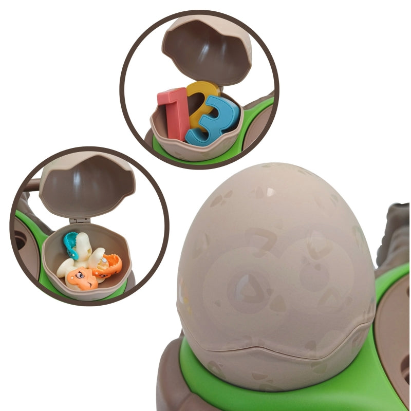 Dinozaur z równoważnią od marki WOOPIE zachęci do poznawania świata, liczb i działań matematycznych, a między nauką przerwa na grę łowienie dinozaurów! Na podstawie znajduje się ruchoma tarcza, z której można łowić małe dinozaury. Włącznik znajduje się na przodzie po prawej stronie. Jak guziczek ustawimy na środku, tarcza zacznie się obracać, gdy przesuniemy go do końca w prawo to usłyszymy przyjemną melodie, która będzie nam towarzyszyć podczas zabawy. Za tarczą umieszczony jest duży dinozaur, na którym możemy bawić się wagą. Za dinozaurem jest miejsce na wędki do łowienia, można dołączyć do nich listki z zestawu. Po bokach tarczy umieszczamy dwa zamykane jaja, gdzie możemy ukryć złowione dinozaury. Ciężarków w zestawie jest 10, jeden ciężar odpowiada jednemu zwierzęciu z zestawu, czyli ciężarek 1 odpowiada jednemu dinozaurowi, ciężarek 2 - odpowiada dwóm dinozaurom, itd. Dodatkowo znajdziemy tu też karty z działaniami i odpowiedziami. Ta zabawka doskonale pobudza wyobraźnię, zachęca do kreatywnego i nieszablonowego myślenia, a także wspaniale rozwija zdolności manualne u najmłodszych, dodatkowo zapewnia wiele frajdy podczas nauki.