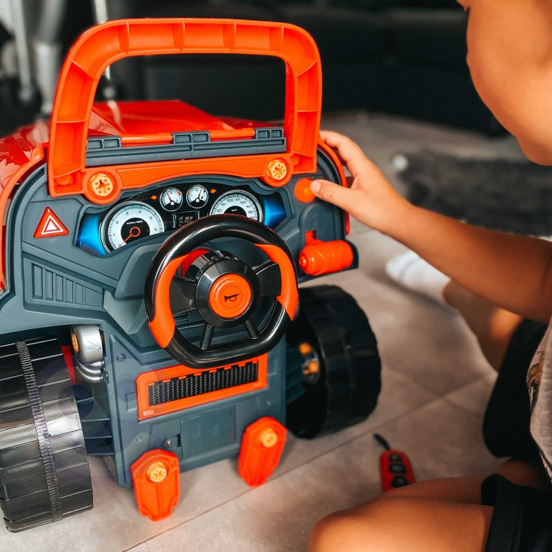 - dodatkowym urozmaiceniem zabaw będą odgłosy silnika, klakson oraz świecące reflektory,