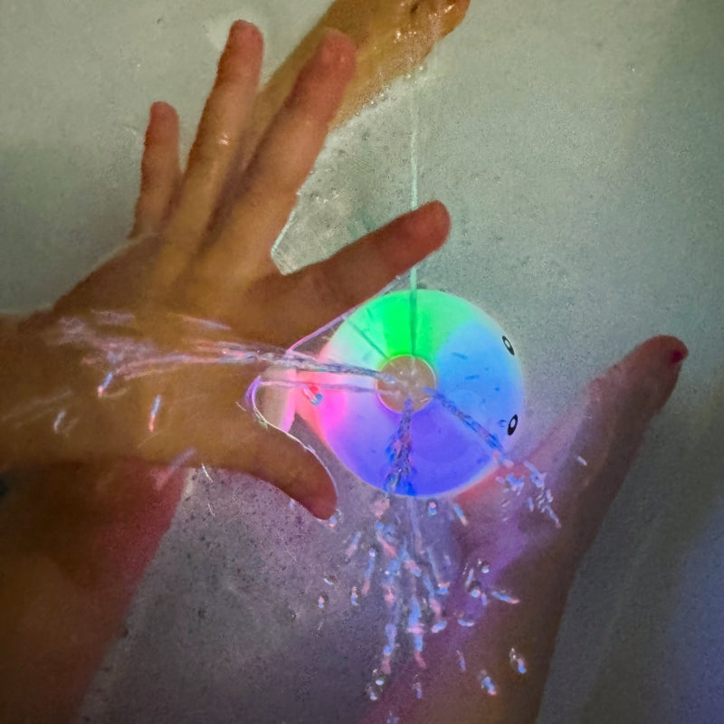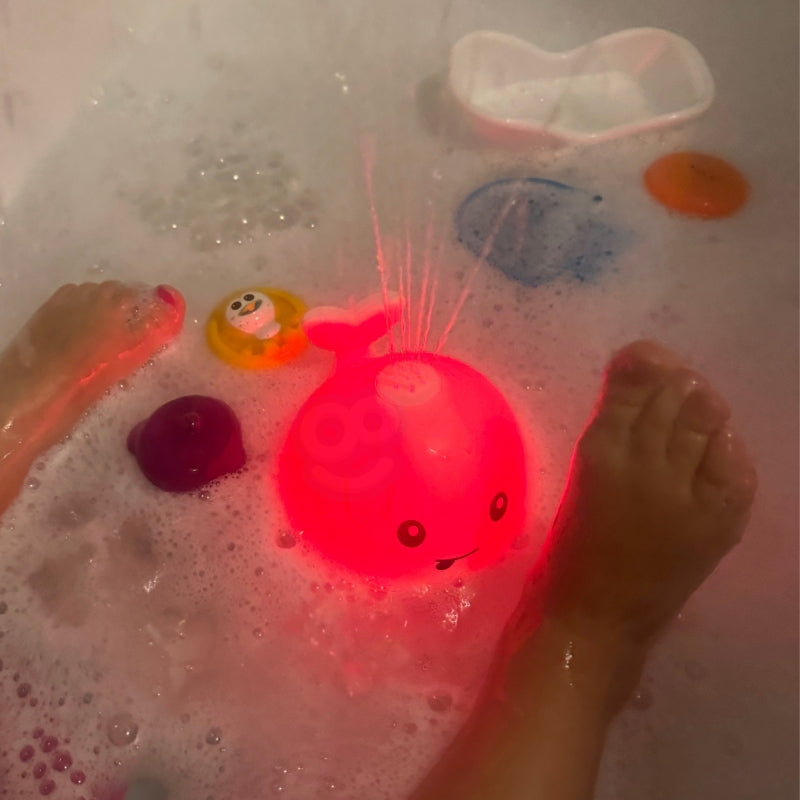 - Dla dzieci, które boją się wody, wielorybek może stać się idealnym rozwiązaniem. Jego kolorowe światła i zabawne fontanny wodne przyciągają uwagę dziecka, sprawiając, że kąpiel staje się przyjemnym i relaksującym doświadczeniem