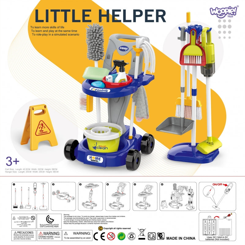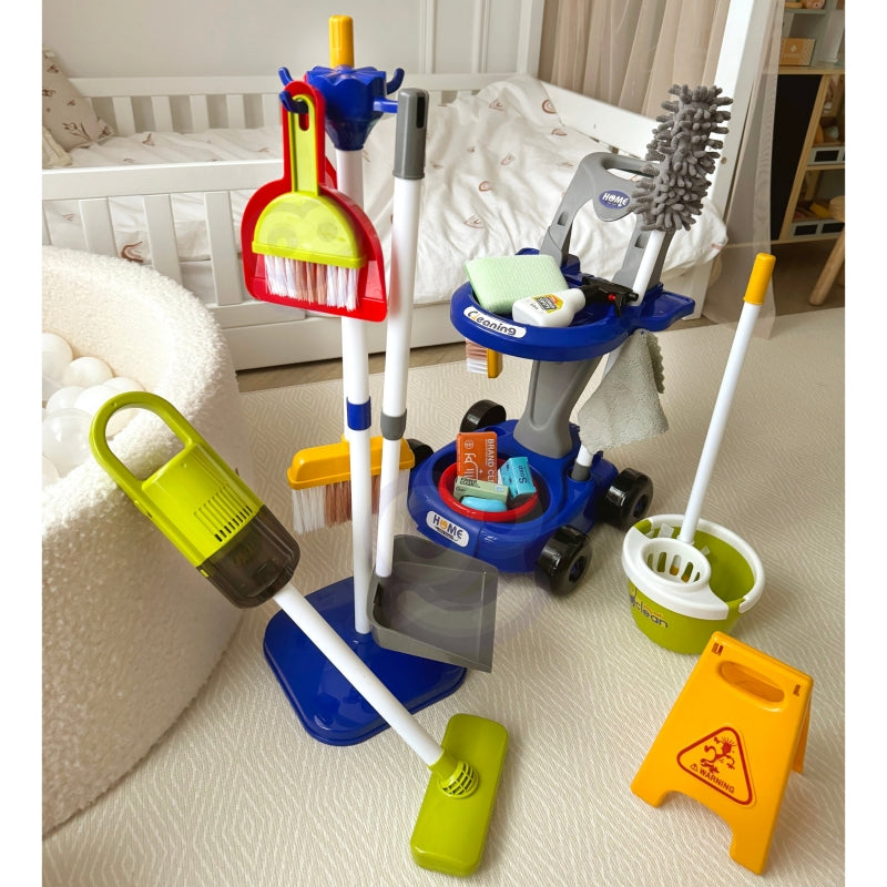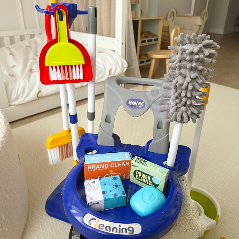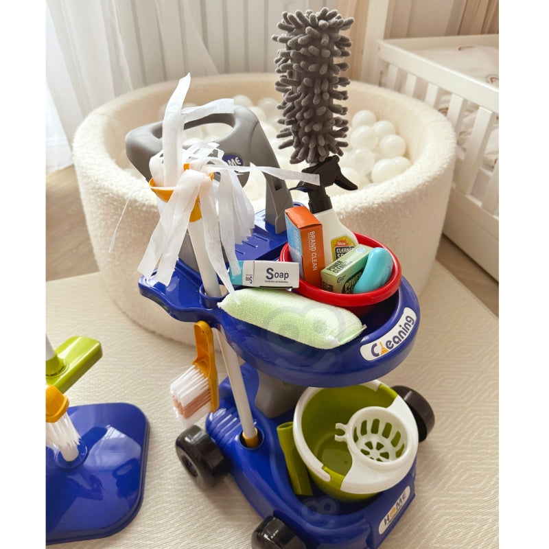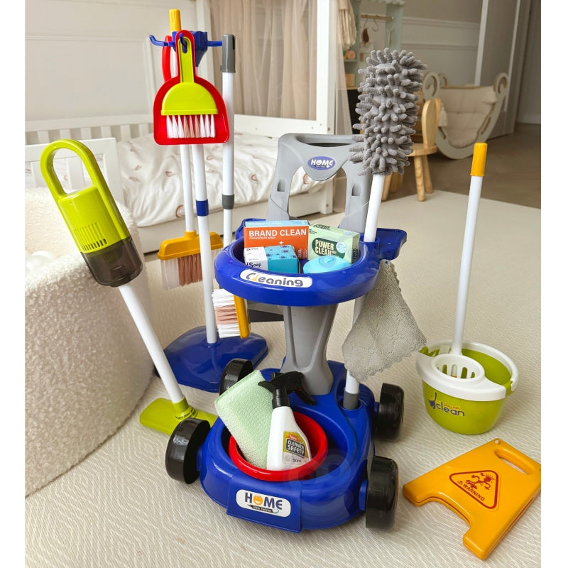 WOOPIE Zestaw do Sprzątania na Kółkach XXL Wózek 3w1 29 el. Niebieski