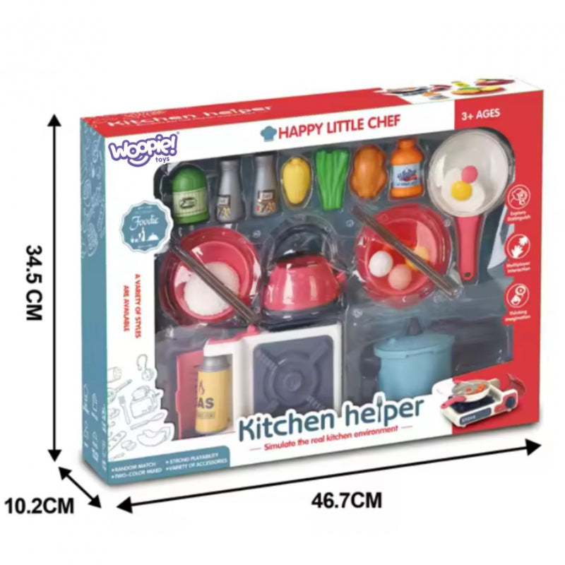 WOOPIE Zestaw Kuchenny Pomocnik Kucharza Kuchnia Gazowa Garnek Patelnia Czajnik Akcesoria