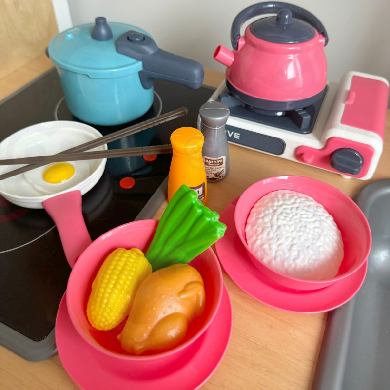 - Zestawy kuchenne zachęcają do kreatywnej zabawy. Dzieci mogą udawać, że gotują, wymyślać własne przepisy i tworzyć wyimaginowane potrawy. To świetny sposób na rozwijanie wyobraźni