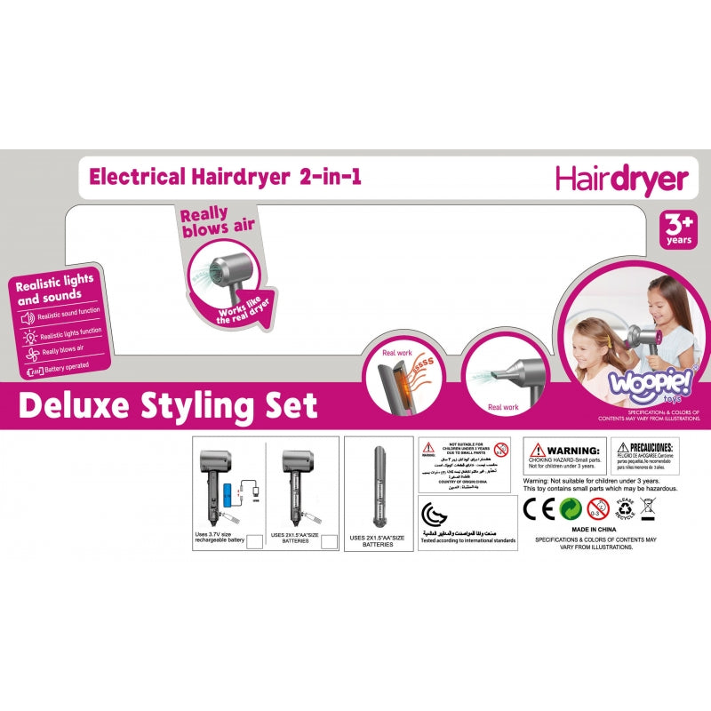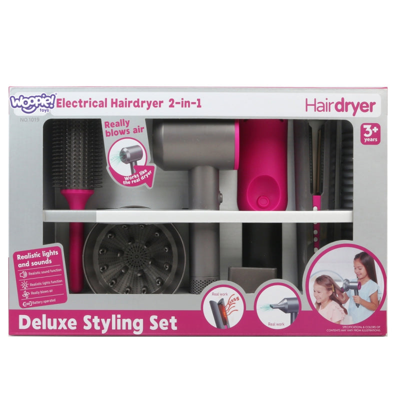 Zestaw Małego Fryzjera Suszarka Prostownica od marki WOOPIE jest przeznaczony dla dzieci, które lubią kreatywną zabawę i chcą naśladować dorosłych. Dzięki bezpiecznym materiałom, dzieci mogą bawić się w stylistkę fryzur. Zabawka rozwija zdolności manualne, kreatywność i wyobraźnię.
