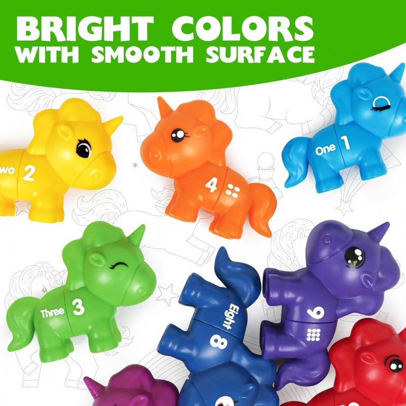 WOOPIE Zestaw Nauka Liczb Kolorów Montessori Figurki Jednorożce do Składania "Dopasuj Cyferki" 13 el.